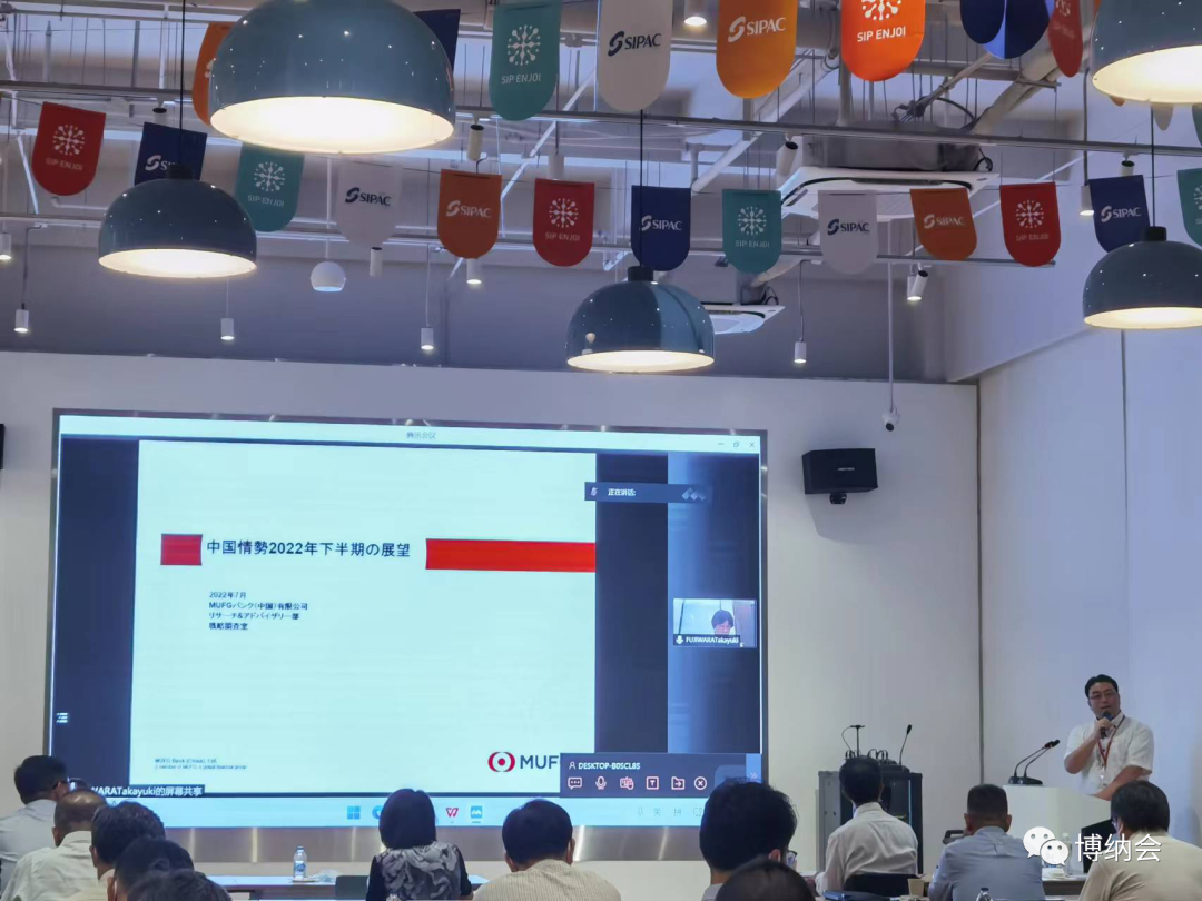 本次說(shuō)明會(huì)首先由蘇州工業(yè)園區(qū)投資促進(jìn)委員會(huì)的領(lǐng)導(dǎo)致開場(chǎng)辭。隨后,分別由蘇州工業(yè)園區(qū)管理委員會(huì)徐健處長(zhǎng)介紹了園區(qū)的最新發(fā)展、未來(lái)展望以及為實(shí)現(xiàn)碳中和目標(biāo)所做的努力;三菱日聯(lián)銀行(中國(guó))有限公司調(diào)研顧問部的藤原先生,以“中國(guó)形勢(shì)2022年下半年展望——疫情沖擊下如何恢復(fù)運(yùn)營(yíng)”為主題進(jìn)行了演講。